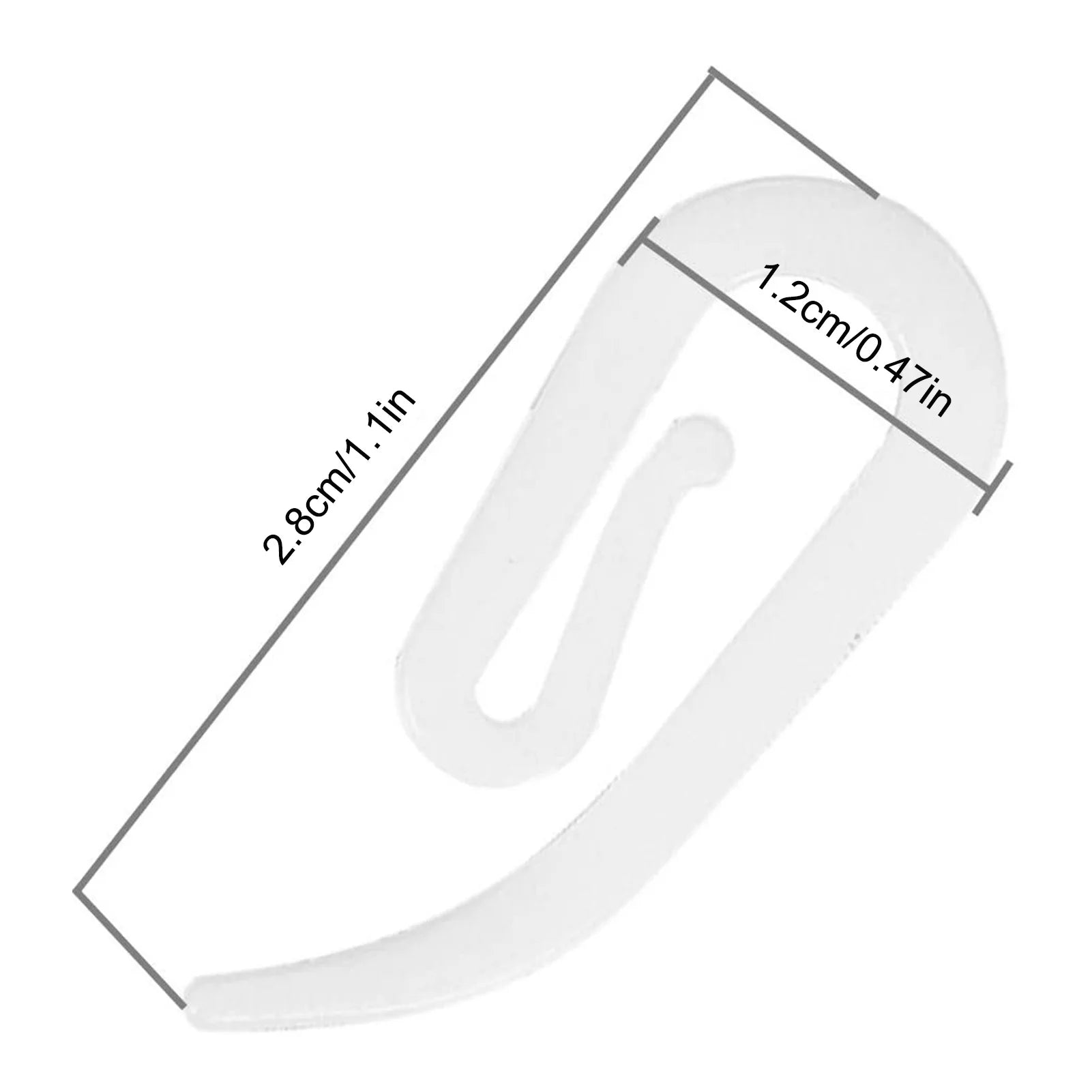 1. What Your Get: White Plastic curtain Hook Size: about 2.8x1.2cm/1.1x0.47inch(LxW). Each package includes 100 PCS hooks.