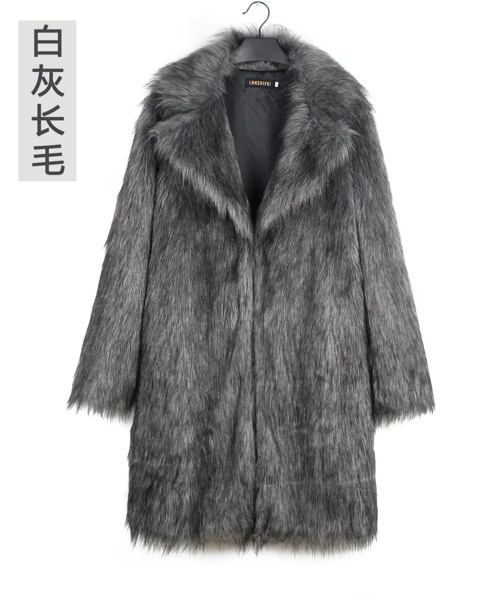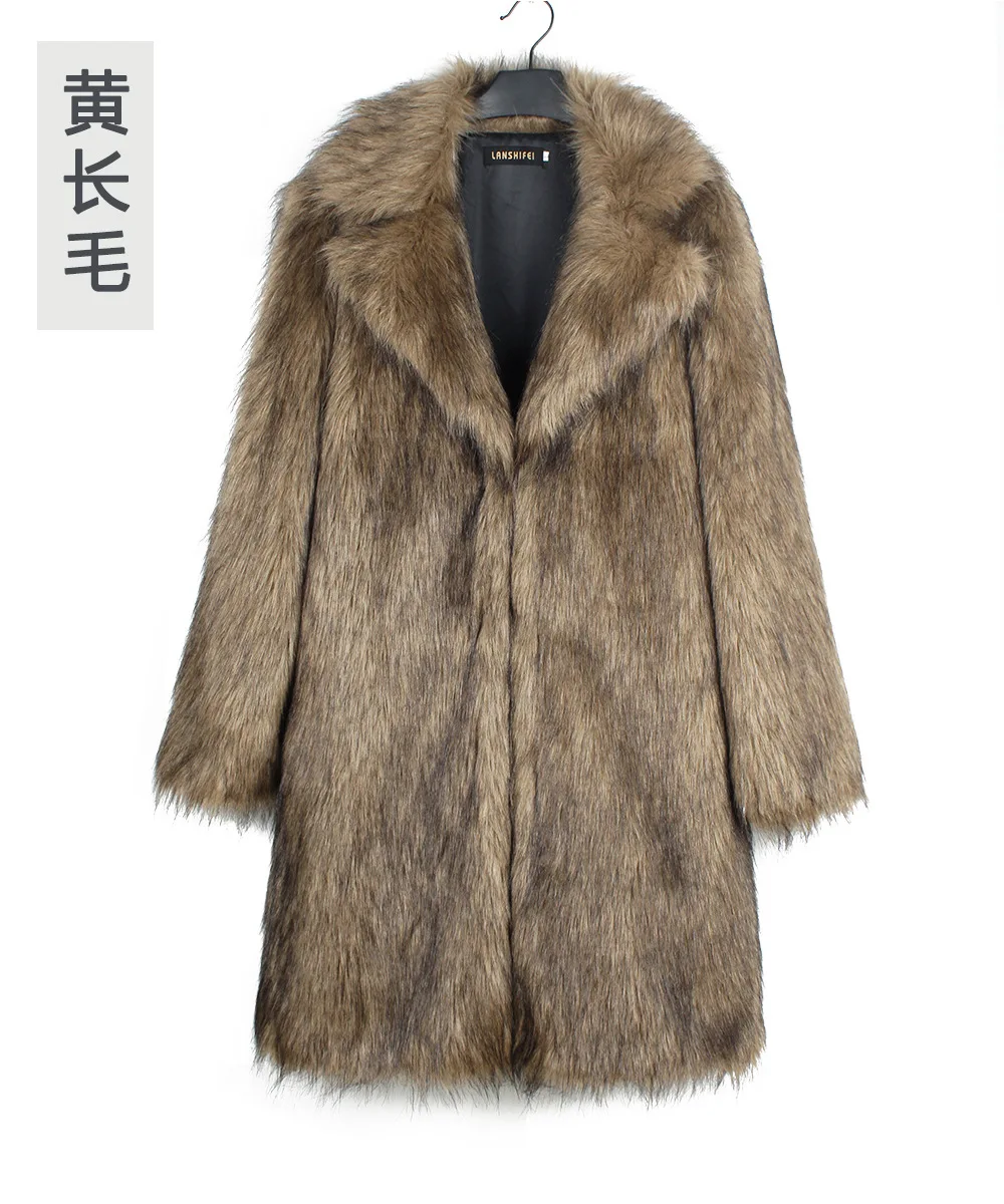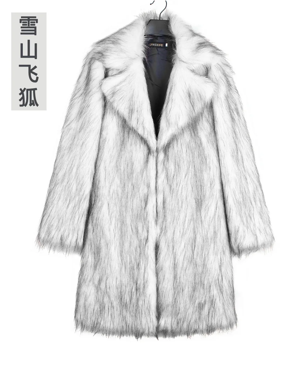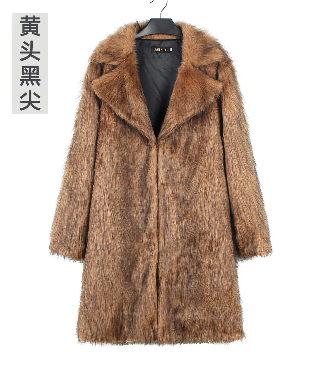 Autumn Winter New Fashionable Suit Collar Men Jacket Synthetic Fur Imitation Fox Fur Thick Medium Long Coat