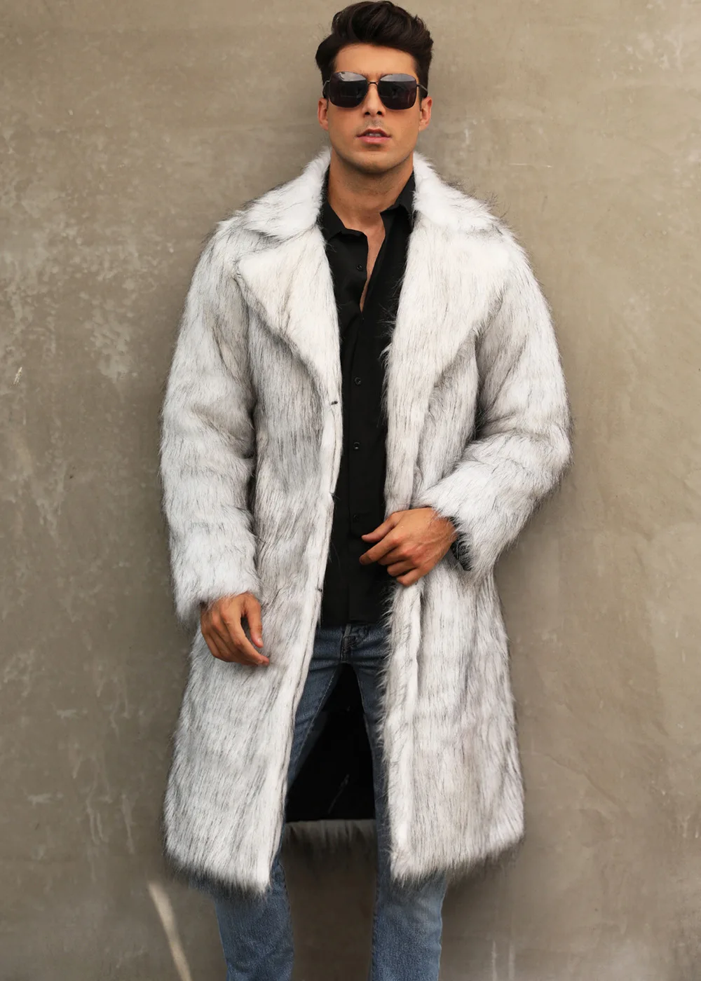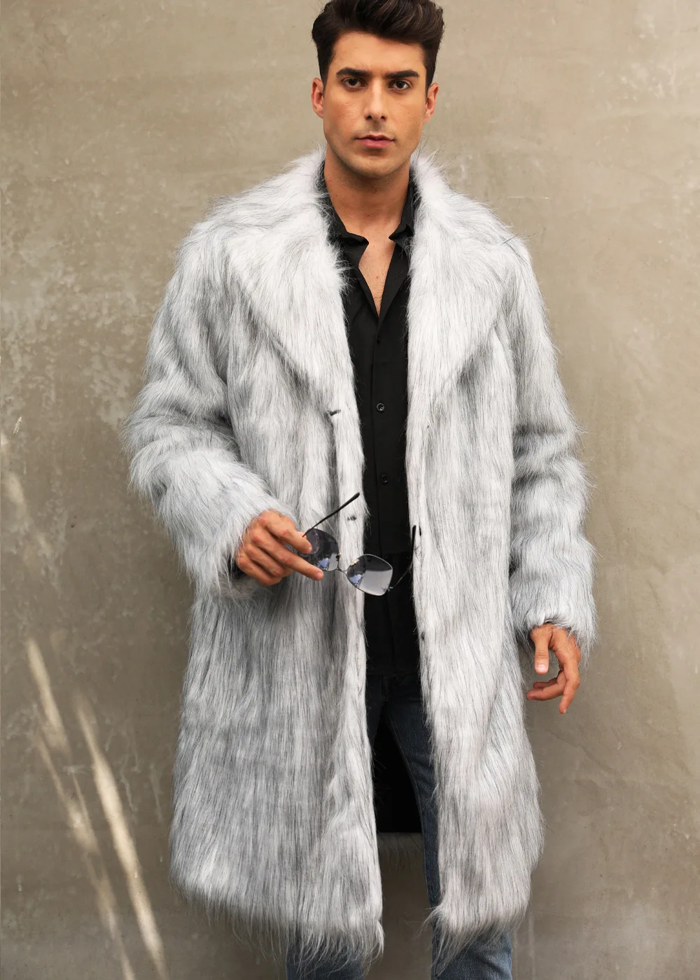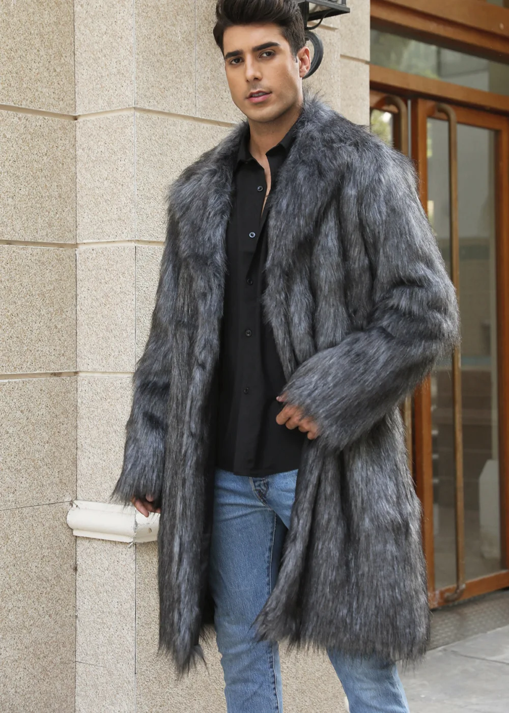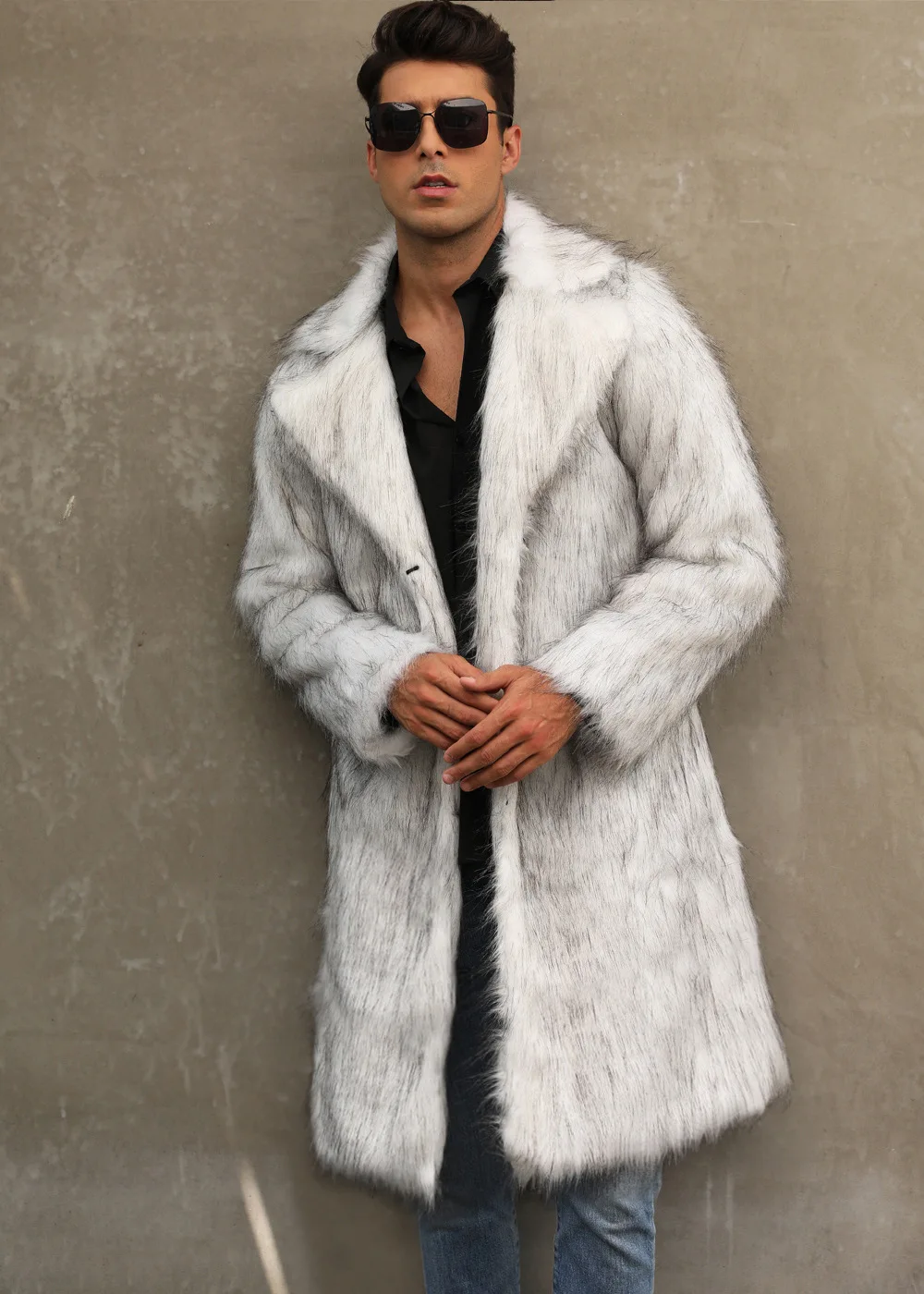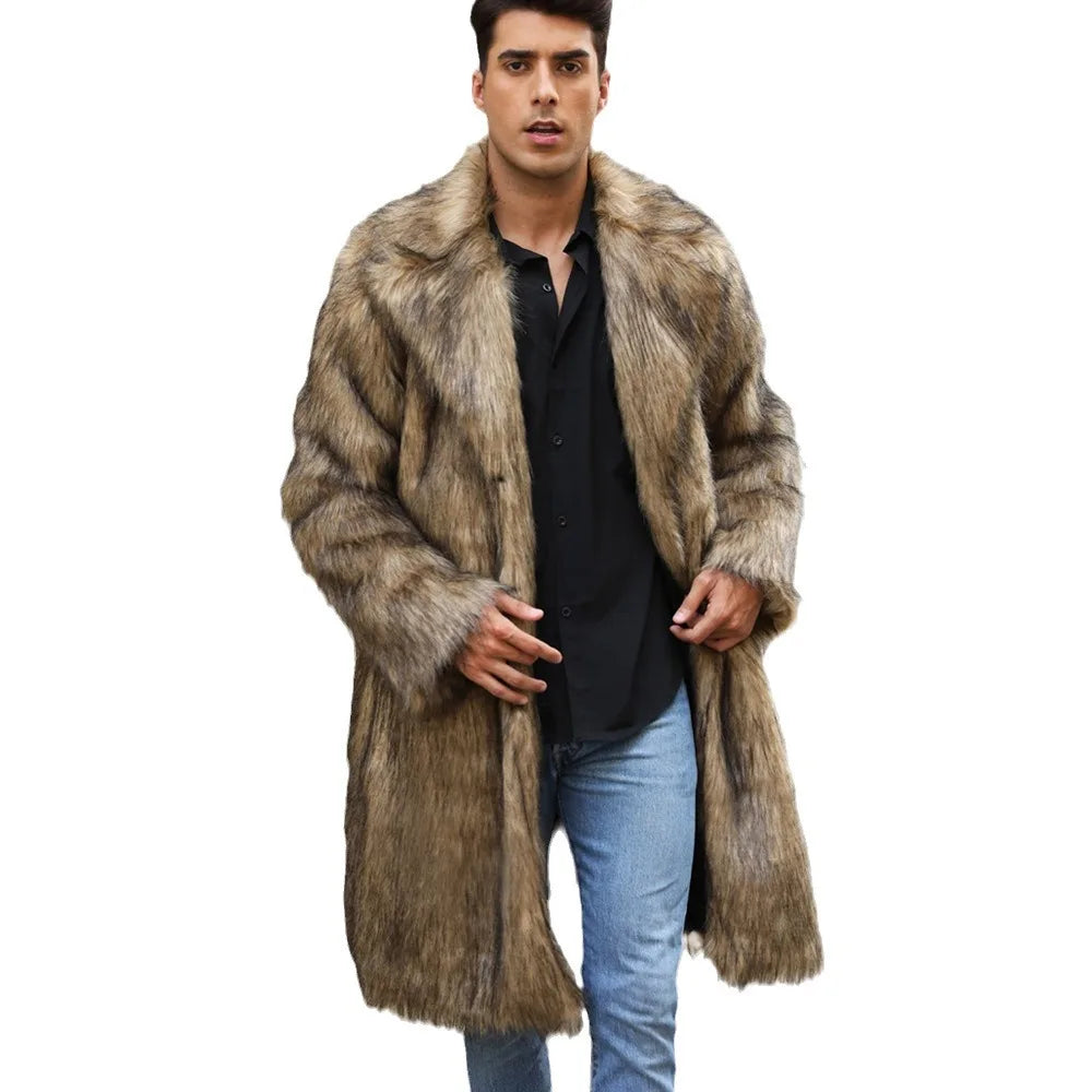 Autumn Winter New Fashionable Suit Collar Men Jacket Synthetic Fur Imitation Fox Fur Thick Medium Long Coat