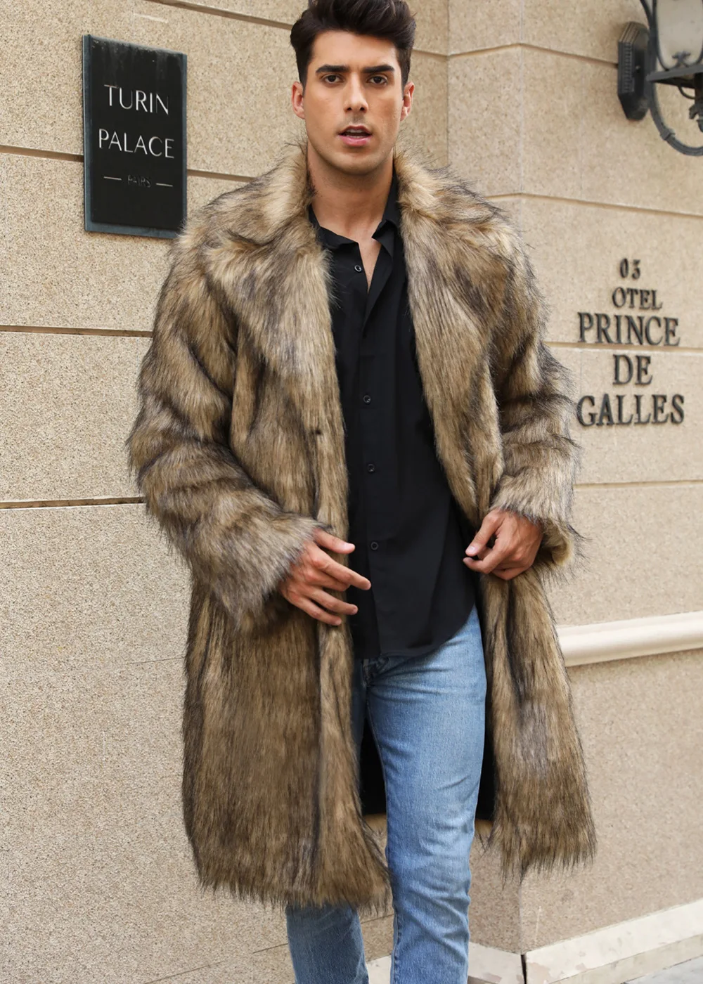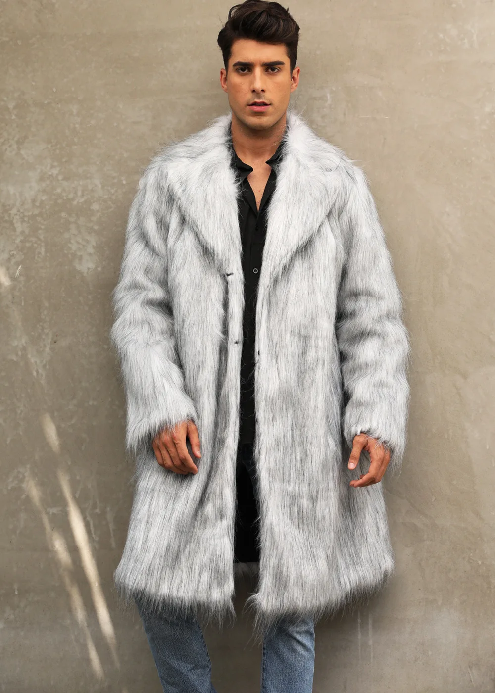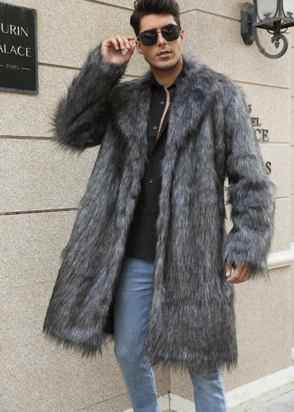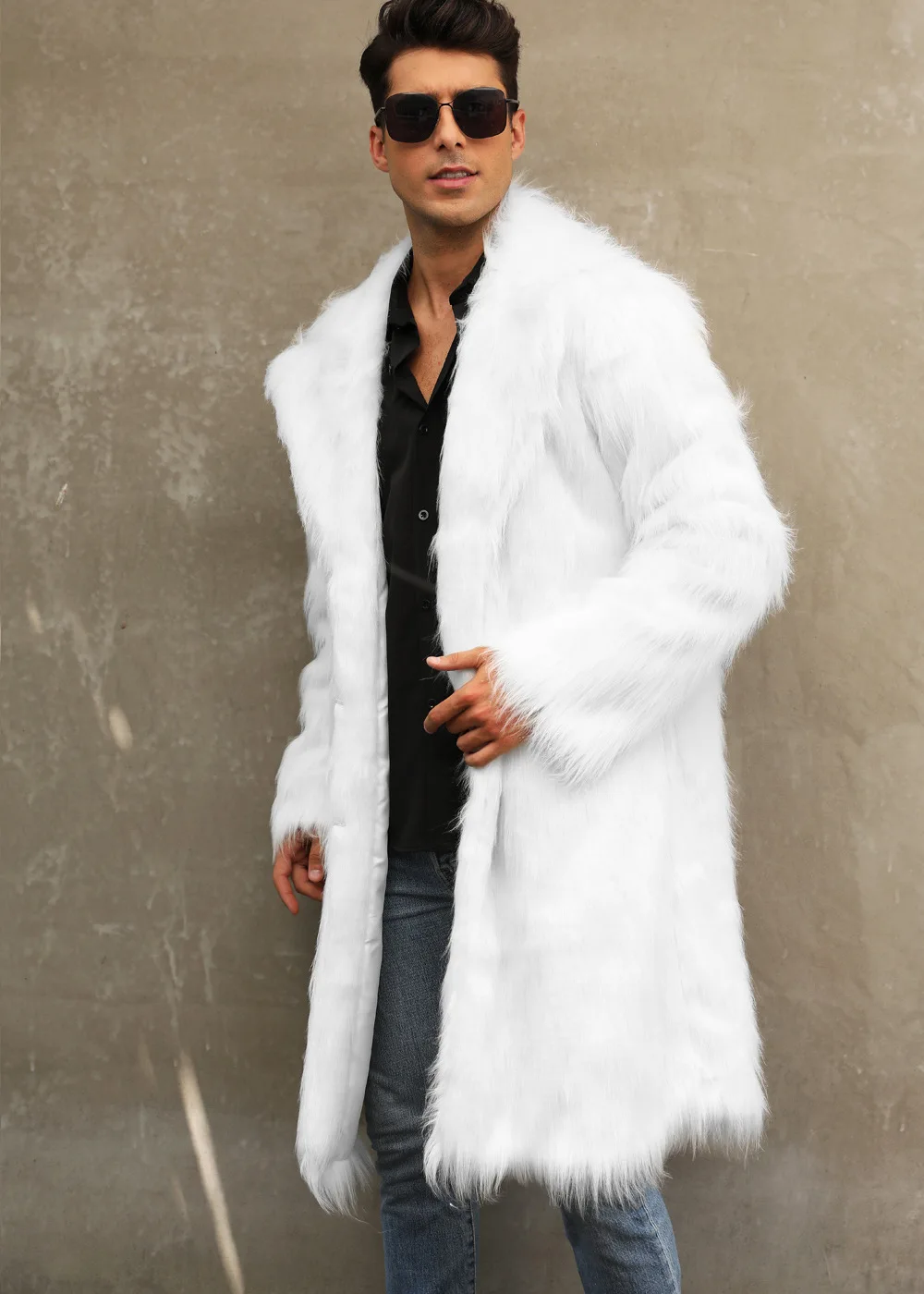 Autumn Winter New Fashionable Suit Collar Men Jacket Synthetic Fur Imitation Fox Fur Thick Medium Long Coat